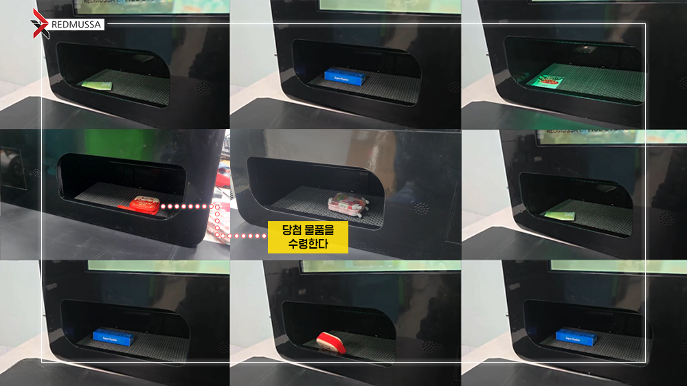 룰렛 결과에 따라 당첨된 상품이 벤딩 머신에서 자동으로 배출됩니다.