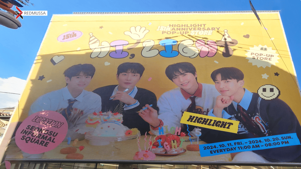 아이돌 그룹 하이라이트의 데뷔 15주년을 기념하는 팝업스토어가 성수동 인포멀스퀘어에서 성황리에 열렸습니다.