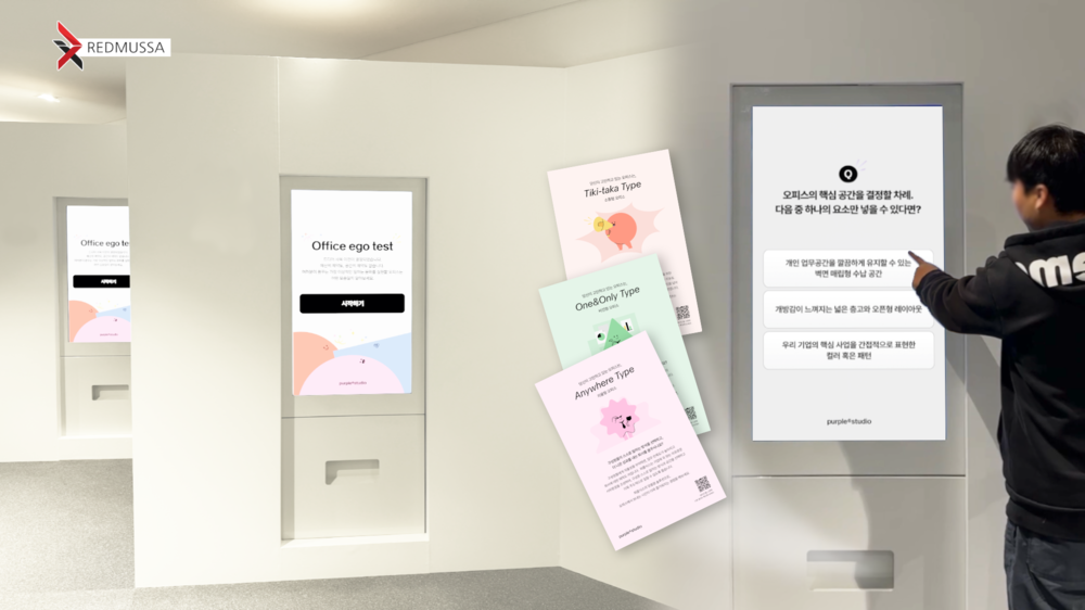 방문객들은 키오스크를 통해 자신의 공간 오피스 MBTI 유형을 재미있게 탐색하며 자연스럽게 퍼플식스 스튜디오 브랜드에 대한 흥미를 느꼈습니다.